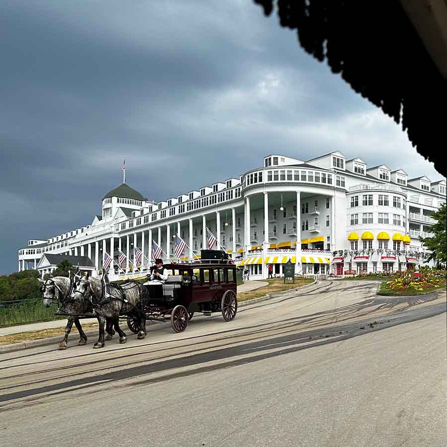 00:00:00 In this section, the speaker discusses their recent trip to Mackinac Island and the interesting sights they encountered. They mention walking around the island, which has a circumference of 8.2 miles, and seeing a tractor trailer parked on the beach, which is illegal due to the island's ban on motor vehicles. The speaker speculates that the truck may have been brought in by a ferry or it could be involved in illegal activities. They also mention taking a carriage ride tour with tour guides who shared jokes and interesting facts about the island, including the construction of the Grand Hotel in just 93 days. Additionally, the speaker mentions staying in a room without windows in the main hotel, which they found unusual.